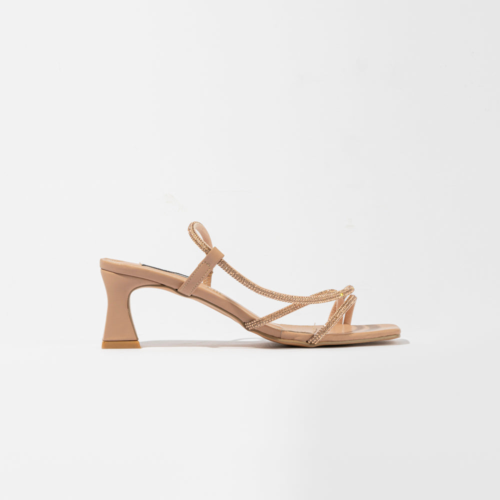 - Tacón y tiras de soporte con piedras brillantes.